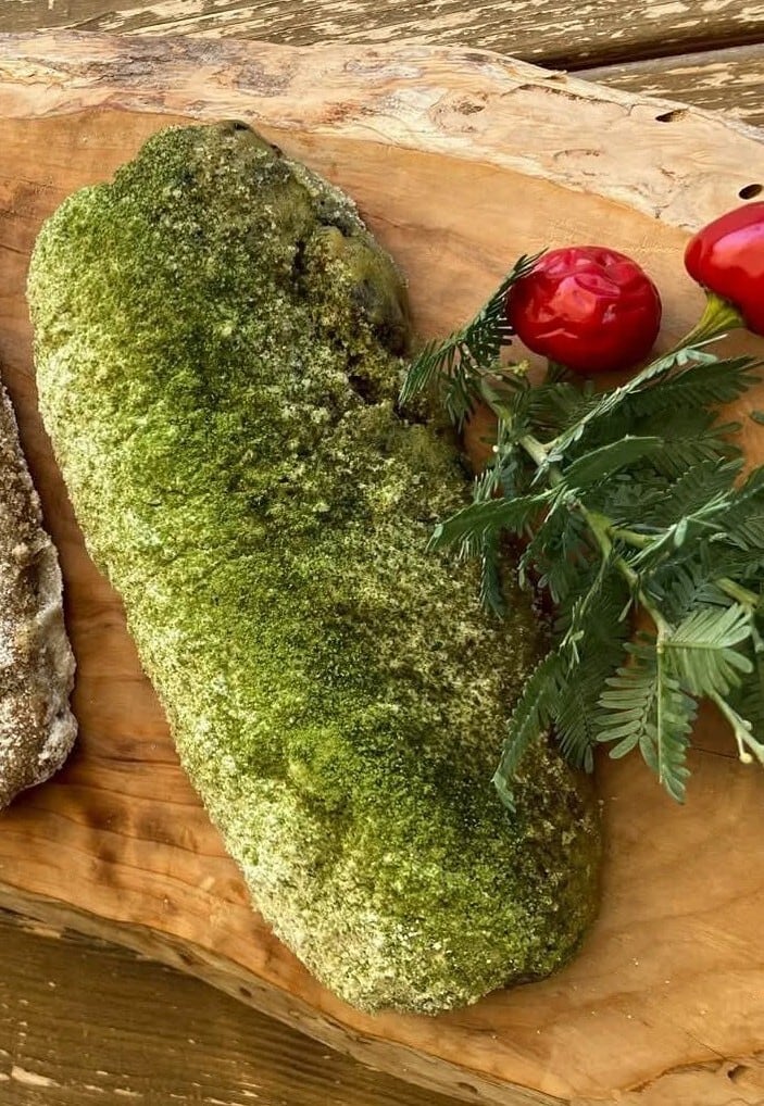 深緑茶房さんの伊勢茶パウダーを使い、ラムレーズン、アーモンド、黒豆かのこ、大納言かのこを使った和洋折衷の伊勢茶シュトレン
