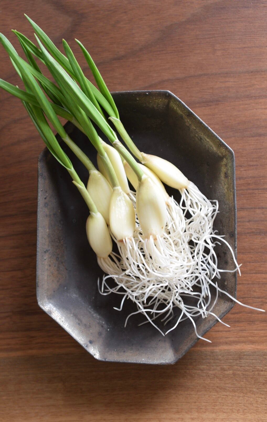 発芽ニンニク、芽や根まで丸ごと食べれます。匂いも少なく、サラダや揚げ物・炒め物など色々と使えて栄養豊富です。