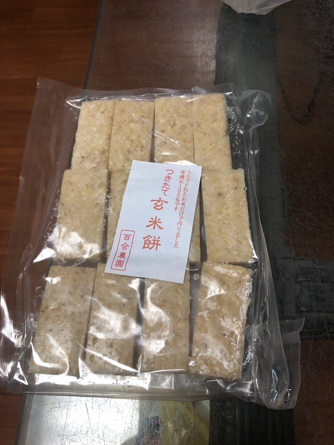つきたて玄米餅450g(11~12切れ入り) 百合農園 無農薬無化学肥料もち米100%使用
