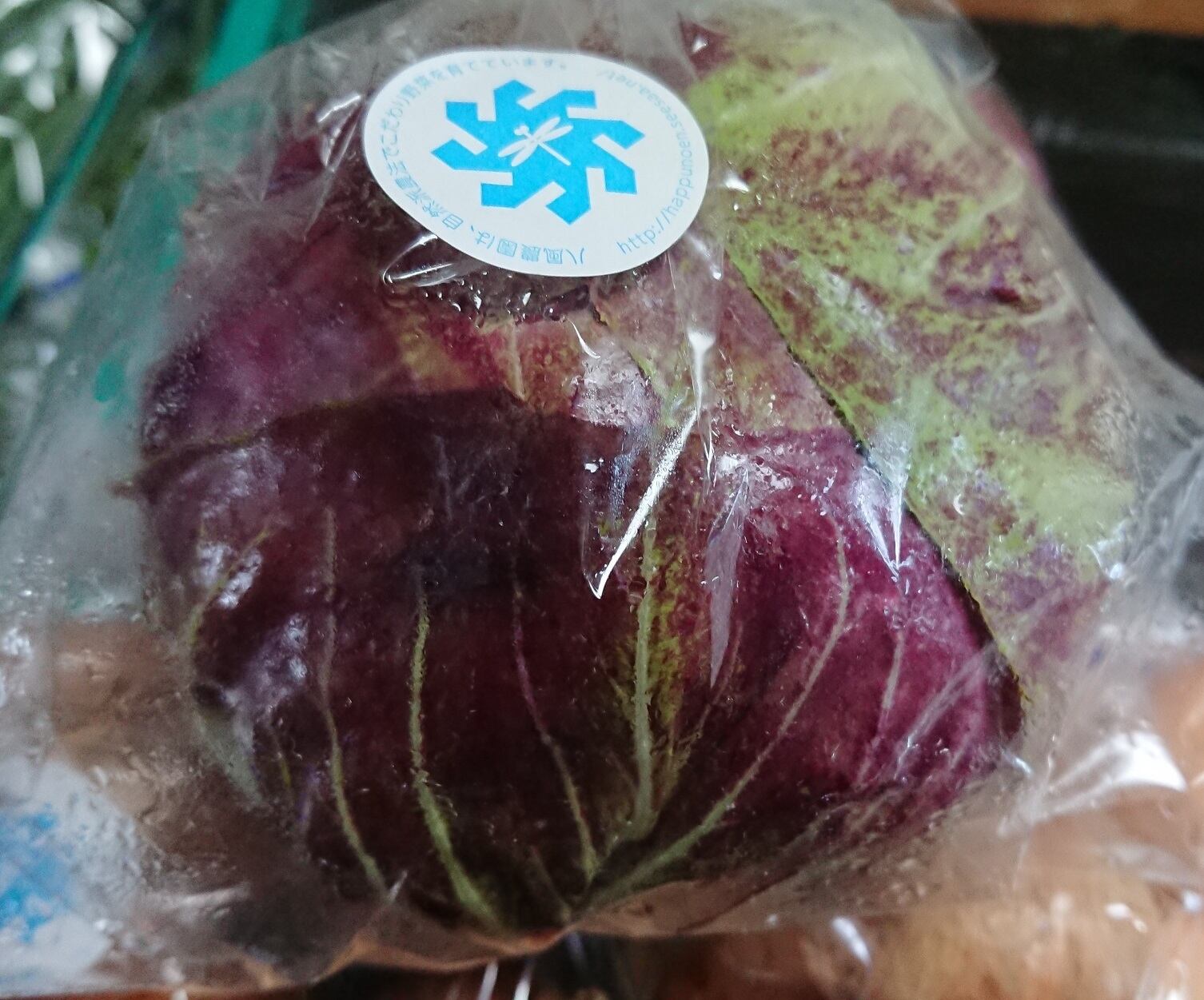赤紫に白の線がきれいなチコリの一種。サラダやマリネがおすすめです。ほんのり苦みのある味わい、レタスのようにサラダに入れると彩りが良くなります。