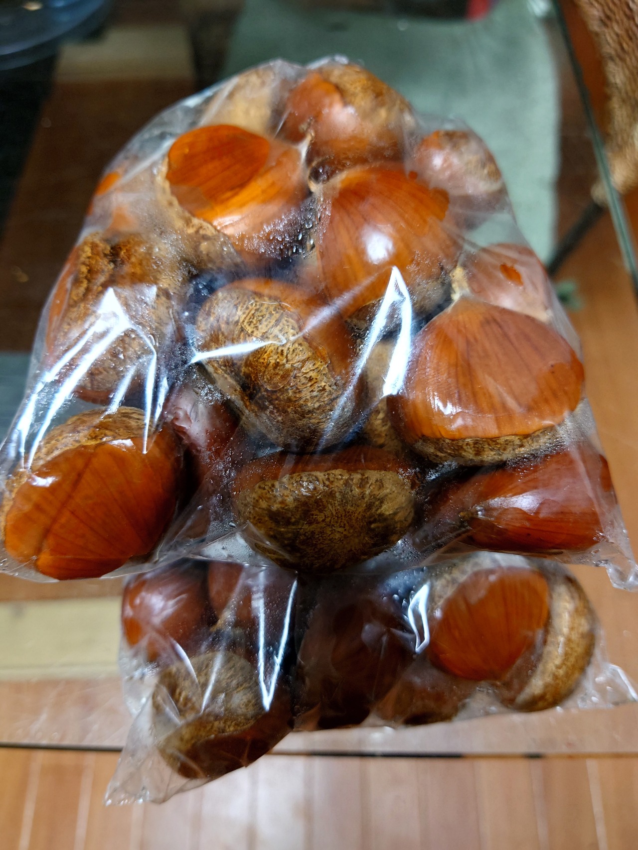 やっと栗が落ちました!秋の味覚と言えばこれ!水の谷農園さんの生栗。選別が丁寧なので、良質な栗だけを袋詰めしています。