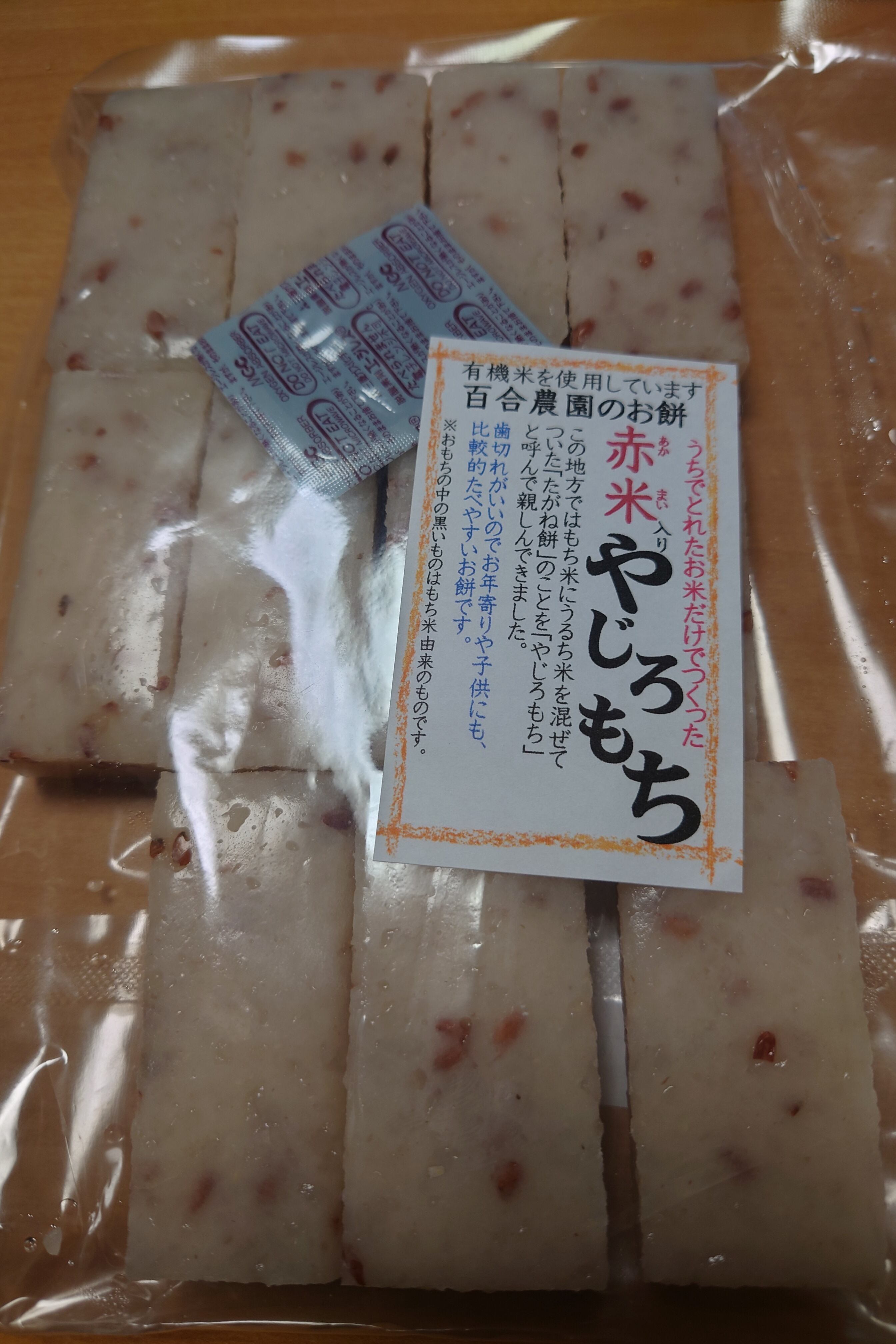 赤米やじろ餅450g(11~12切れ入り) 百合農園 無農薬米使用