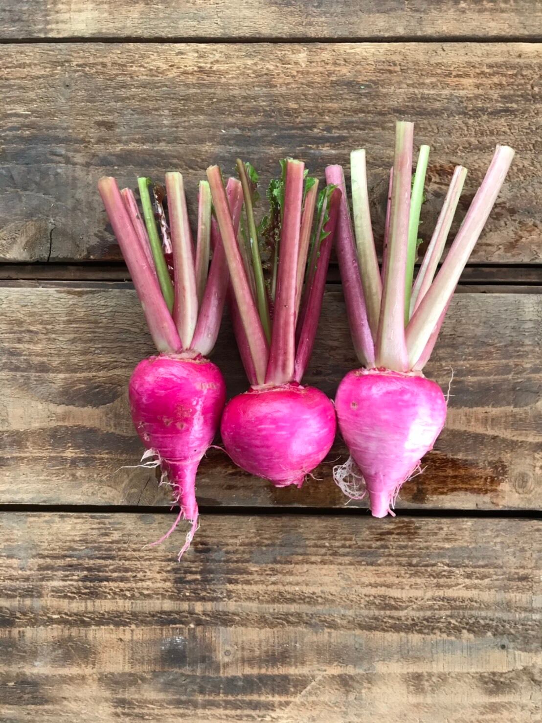 彩り鮮やかな赤いカブ、サラダや浅漬けに。